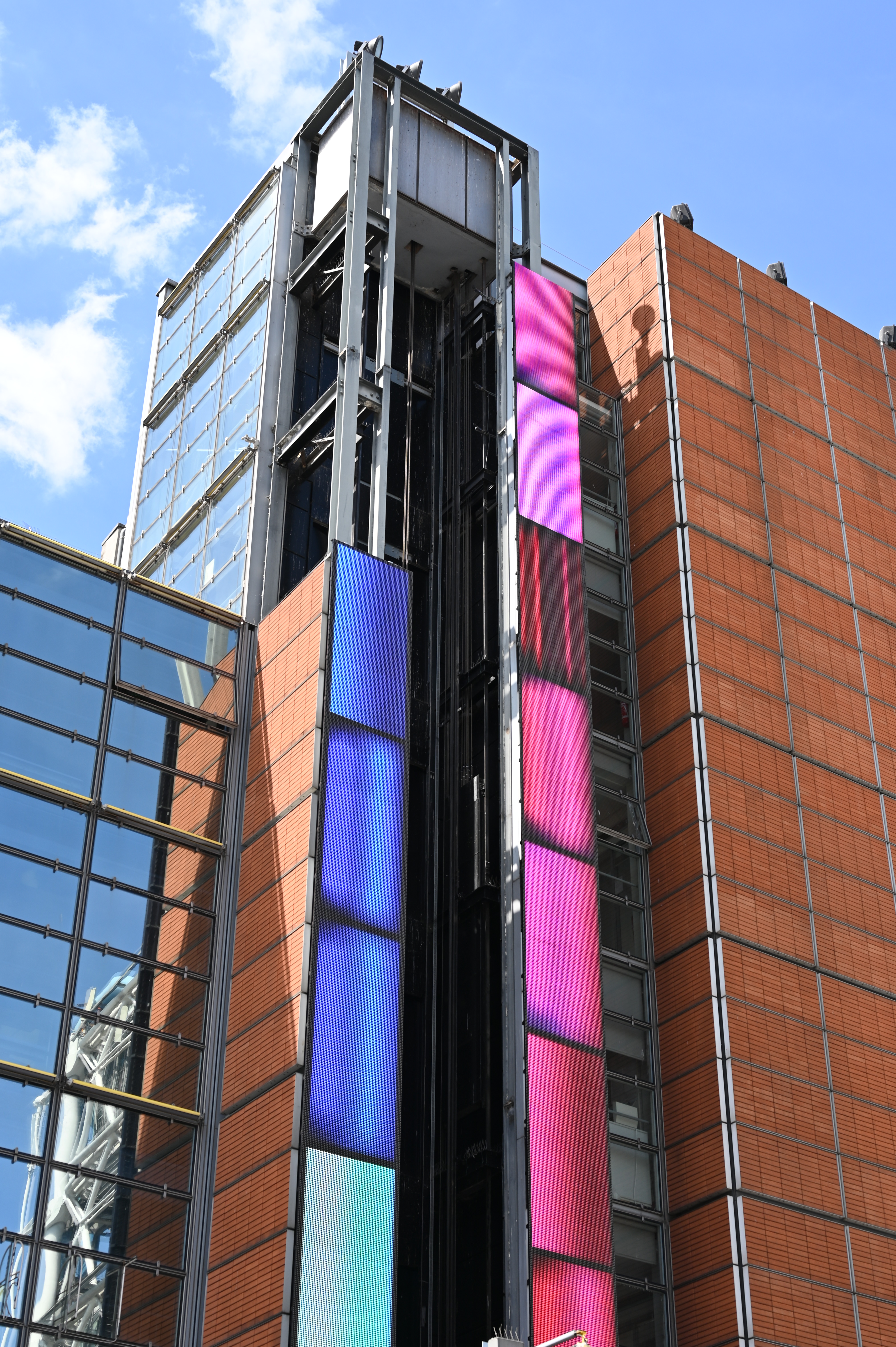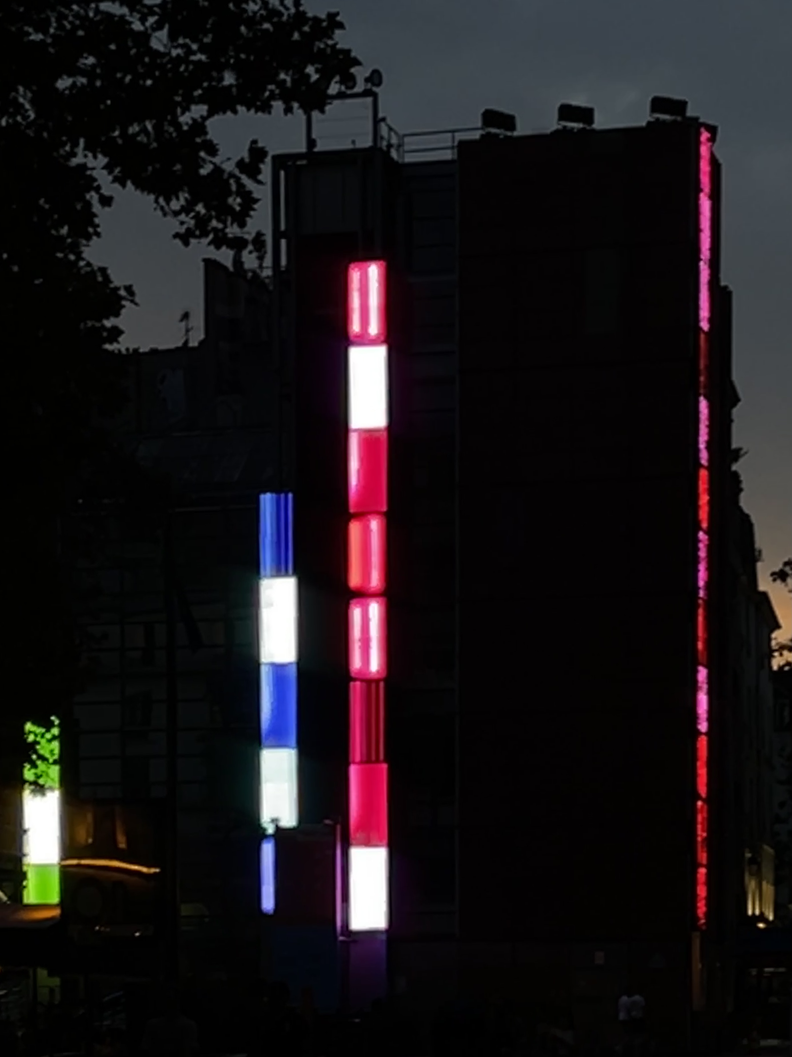 For the emblematic Centre Pompidou square, the artist duo AROTIN & SERGHEI conceived an installation of intermedial sculptures, part of their work-in-progress Infinite Screen: 4 Infinite Light Columns installed along the extension of the Arts Center, the IRCAM tower by Renzo Piano and constructed by “immaterial” modules of individually drawn and animated portraits of “light cells”. The work honours the visions of the multiple avant-gardes and disciplines presented at the Centre Pompidou, most particularly paying homage to the museum’s collections notably Brancusi‘s Infinite Columns, Kandinsky’s Synethesia, to the architecture itself and to the sound universe of the Institute for Research and Coordination in Acoustics & Music – IRCAM-Centre Pompidou.